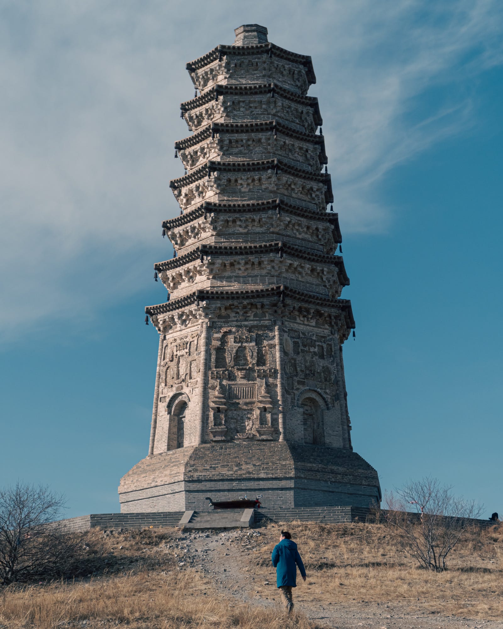 画面远处的是辽中京大明塔,Funes 拍摄上线的第一个模型