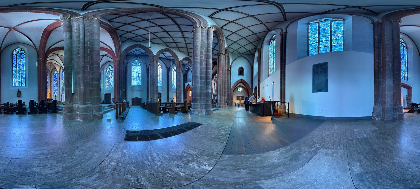 全景照片来自 St. Stephan’s Church of Mainz,其中整个教堂蓝色彩绘玻璃的作者是夏加尔。