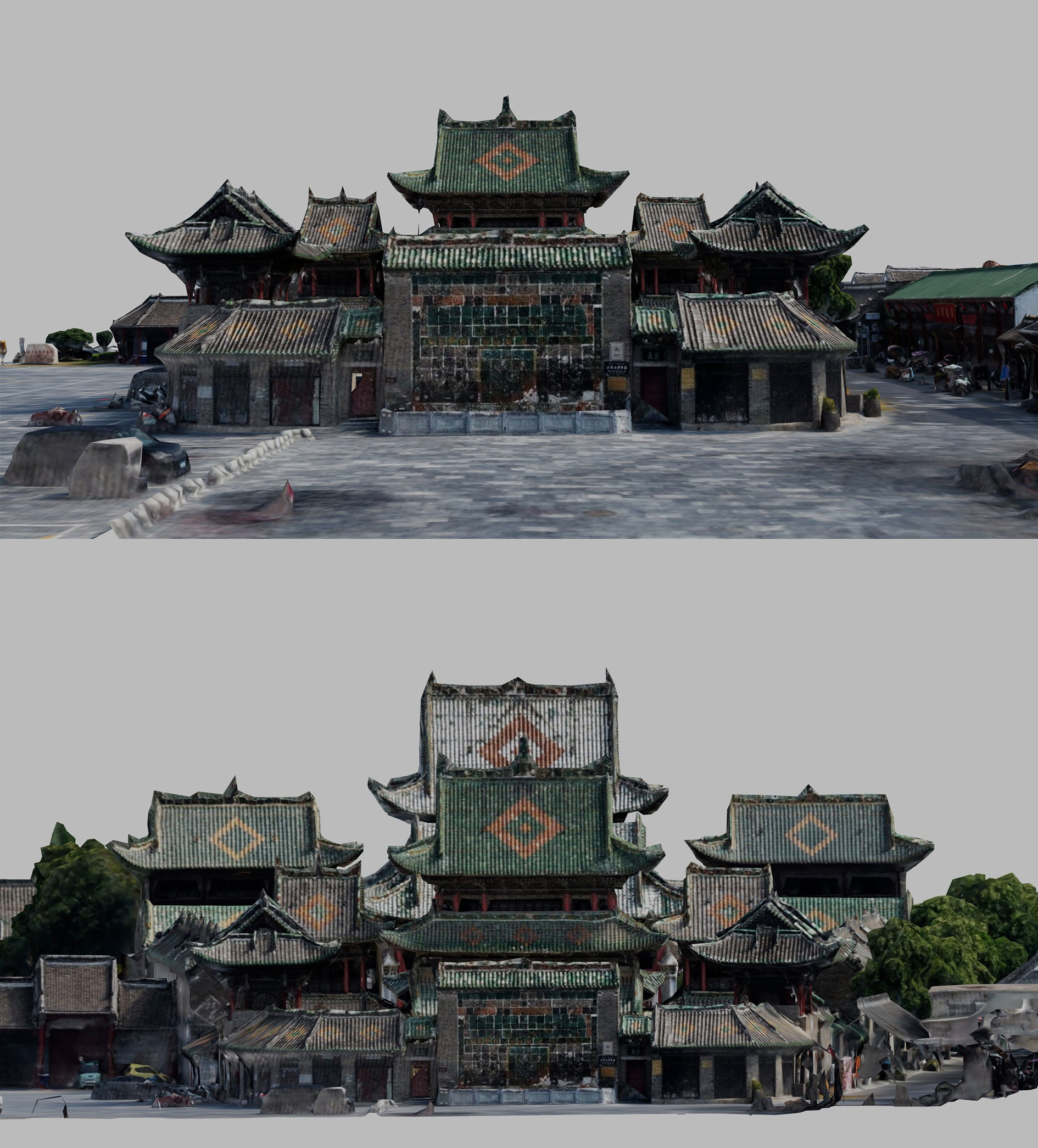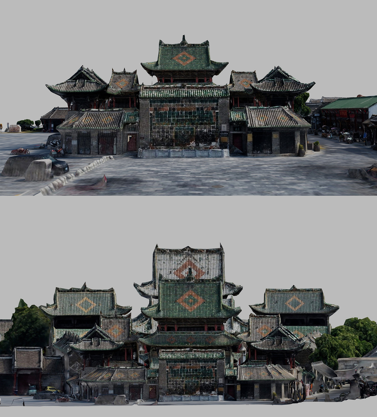 上下分别是在同一个视角下标准视角和正交视角的区别,河南社旗山陕会馆